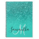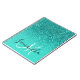 Teal Turquoise Faux Glitter Ombre Monogram Notebook
