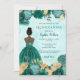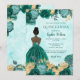 Teal Turquoise Gold Floral Princess Quinceañera Invitation