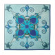 An artistic design tile for bathroom or kitchen featuring a Mediterranean inspired floral geometric pattern in teal, blue and turquoise colours.