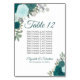 Teal Turquoise Roses Elegant Wedding Seating Chart Table Number