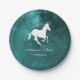 Personalise a unique paper plate for wedding reception guests with a set of Teal Unicorn Bridal Shower Paper Plates. Paper Plate design features a starry background with a unicorn adorned with stars. Personalise with the groom and bride's names along with the wedding date. Additional wedding stationery available with this design as well. Need help with customisation? Please contact me and I will work out the wording and details to fit this design to your satisfaction.