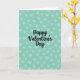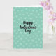 This Valentine's Day card features the text “Happy Valentine’s Day” placed right in the center, making it the first thing you notice. The lettering is dark and thick, standing out clearly against the light background. Behind the words, the whole card is a soft mint green that feels calm and sweet. Scattered all over the background are many pale heart shapes, repeated in a loose pattern. The hearts look slightly uneven, like they were drawn by hand, which gives the design a friendly, relaxed feel. There aren’t any characters or extra objects—just the message and the hearts working together to set a romantic mood 💕. Overall, it’s simple, modern, and easy to read, with a gentle Valentine’s feel ❤️.