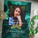 Invite your Quinceañera guests with a teal green and gold gemstone tiara invitation. Easily upload your verde quinceanera dress photo over a beautiful teal green rose background. Green birthstone Quinceanera invitation has beautifully matching envelopes, return-address labels, and thank you cards. A popular green design with a glittery gold number 15 on the back is perfect for your Mis Quince birthday celebration.