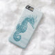 a vintage illustration style seahorse in shades of teal is featued on this iPhone 6 case
