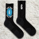 Make your own custom high-performance athletic crew socks for volleyball players and teams with teal team colours! Just click to personalise the template and type your own volleyball team name and volleyball player jersey number in the custom text boxes. You can also use the customisation tools to change the colour of the sock (currently set on black). Makes a great team gift for volleyball teams with teal team colours, especially high school and college volleyball teams!