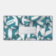 This cool volleyball themed desk mat features varied size teal and white volleyballs turned every which way in a 3D-look pattern overlying a volleyball net detail accent graphic - background is customisable white - personalise the athlete's name at the upper left corner on one of the volleyballs in the pattern - by katz_d_zynes