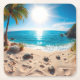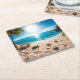 Teal Watercolor Sea Turtle Coastal Zen Square Paper Coaster