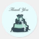 Say thanks with this elegant wedding cake in shades of teal with cascading white flowers and pretty teal coloured ribbons. The word thank you can be changed to something else if so desired.