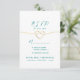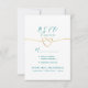 Modern, minimalist, elegant teal wedding RSVP card with gold rope heart and simple calligraphy handwritten script.