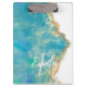 Teal & White Agate Marble Abstract Name Monogram Clipboard