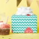 A stylish, modern, chic chevron zig-zag pattern in teal and white. Customise the coral red quatrefoil label with your 3 initial monogram, name or other text. (Click on "Customise it" to change the font, adjust font sizes, font colours, etc.)