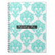 Teal & White Damask Chic Modern Elegant Pattern Spiral Notebook