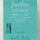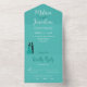 Teal White Elegant Wedding Bride and Groom All In One Invitation