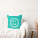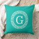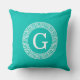 Teal White Greek Key Round Frame Initial Monogram Cushion