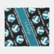 This cute volleyball themed fleece blanket for girls features the realistic image of a volleyball that has teal and white panels patterned at an angle with the sporty font text phrase "I love volleyball" in white that stretches between the angled rows of volleyballs - the volleyballs' teal panels are blended with a girly kaleidoscopic pattern for a textured appearance - personalise her name in a sophisticated handwritten font on an angled chunky full width teal colour strip - background is customisable black - by katz_d_zynes
