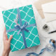 Teal White Large Quatrefoil Pattern Wrapping Paper
