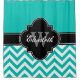 Teal White LG Chevron Black 1ICBR Name Monogram Shower Curtain