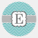 Teal White Monogram Letter E Chevron Classic Round Sticker