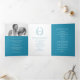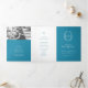 Teal white monogram wreath dedication wedding Tri-Fold programme