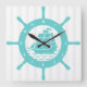 Teal & White Nautical Boat Wheel & Stripes Square Wall Clock