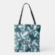 This team colours volleyball themed shoulder tote bag features a pattern of varied size stylised teal and white volleyballs turned every which way on a customisable dark teal background - the volleyballs' teal panels are blended with an artsy, girly floral pattern - personalise with the coach's name, school or club name, team mascot name and season year on a chunky, off-centre, vertical teal stripe - by katz_d_zynes