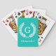 Teal White Wheat Laurel Wreath Initial Monogram Playing Cards