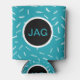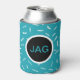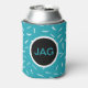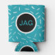 Teal with White Confetti, Monogram circle Can Cooler - Show your team spirit for those with teal and black as their colours or teal and any colour. The inside of the circle is customisable to any colour you'd like and of course the monogram is customisable, too! Take this can cooler to all your tailgates and also give as gifts. With the monogram you will always know which one is yours!