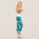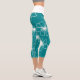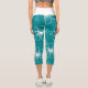 Teal with White Transparent Flowers Capri Leggings