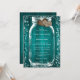 Teal Wood Mason Jar Rustic Fall Wedding Invitation