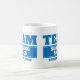 Blue team personalised mug. Ideal for office teams, family events, fun gaming or for sporting teams. Personalise this mug design with your own team name or family name and year of creation of team or motto. Other colours available. Great as an office secret Santa gift, thank you or motivational team gift. Designed by www.mylittleeden.com on zazzle