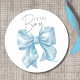 This "Team Boy" sticker features a blue watercolor bow at the top. The phrase "Team Boy" is prominently displayed below in a mix of script calligraphy and serif fonts. The design is simple and minimalist, with a focus on elegance and subtlety. The colour scheme and font choices can be customised to match your theme. Watercolor Blue Bow Team Boy Gender Reveal Sticker Cute Vote Boy Or Girl At Party