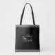 Beautiful modern team bride, diamond ring and white lace on black Tote Bag.