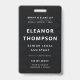 This custom business badge is designed for team building events, corporate retreats, and internal trainings. Featuring a black textured background with a sleek silver gradient line, it includes space for a photo, name, title, and a personalised QR code—perfect for linking to contact details, team bios, or internal resources. A professional, cohesive design for law firms, corporate teams, consultants, and business professionals who value clean, modern branding.