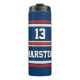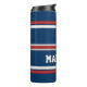 Red and blue and white team jersey stripes sports design with template text to add your own team number and player name.
