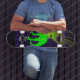 8 1/2 x 32 (old man-size) with greyskull colourway. SHRED 'TIL Y'R DEAD!
