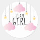 Team Girl Stars Pink Clouds Gender Reveal Voting Classic Round Sticker