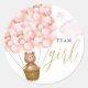 Team Girl. A fun gender voting reveal party game voting sticker featuring a cute teddy bear floating in a basket of pink balloons. Designed by Thisisnotme©