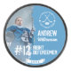 Unique personalised hockey puck photo keepsake for your All-Star hockey player. Our design features a rustic gunge-style design with customisable colour grunge textures and photo frames. Personalise with the hockey player's photo, along with the name, team logo, jersey number, position, and year. Design by Moodthology Papery.