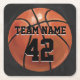 Team Name and Number Basketball Square Paper Coaster