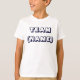 The t-shirt feels and looks great quality, a good thick cotton. It will be a little big for my son, but that means he will be able to wear it and not out grow it too soon. The print was as described on the order when personalised. True size, shape and colour T-shirt- thanks.