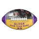 Custom Team Name Player Number Yellow Purple Stripe Photo Football. Modern sporty custom football with your name, team name your number and year on one panel and a custom photo on the second panel - add your text and photo. Sporty design with yellow and purple stripes. You can change any text on the football or erase it. A perfect gift for a football player, teammate, coach. Great keepsake to remember your favourite sport.