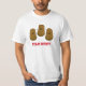 Three funny brown cartoon potatoes each with a big smile and little black eyes. Below is a template reading TEAM POTATO in red and black text. This template can be used as it is or to change to your own text.