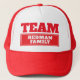 Typographical graphic team event hat in red. Reads: Team and then personalise with your team name. Perfect to for red team events, family gathering, sporting events, team building events and more. Other colours also available. Design by www.mylittleeden.com