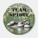 A round Team Spirit motivational magnet for home or office featuring the photo image of a group of pond turtles sunbathing on a rock. Select your magnet size.