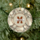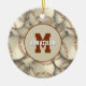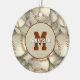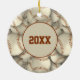 This unique baseball / softball themed ceramic ornament features a pattern of seemingly endless, randomly arranged baseballs / softballs turned every which way - personalize with name and monogram on the front and commemorative year on the back - monogram and circle pendant color theme coordinates with the baseball pattern colors but can be customized to match school team colors or a favorite baseball team's colors - by katz_d_zynes