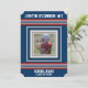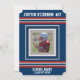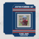 Red, white and blue jersey sports style stripes on a dark navy blue background. Photo frame to add your athlete's team photo, and customise with your name, jersey number, school or team name, and "class of" for your graduation year.