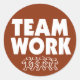 Team Work motivational sticker. Group graphic and "team work" typography to inspire teamwork and cooperation among staff, sports team players, workers, or any group. Background colour can be changed.