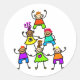 Cute cartoon whimsical illustration of a group of little stick figure boys and girls standing on each others shoulders to form a triangular tower of support and unity. Easily customise and choose your own background colour or add text. Image available on various gifts and products.