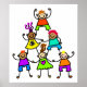 Cute cartoon whimsical illustration of a group of little stick figure boys and girls standing on each others shoulders to form a triangular tower of support and unity. Easily customise and choose your own background colour or add text. Image available on various gifts and products.