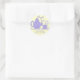 Purple teapot and tea cup with daisies sticker to compliment our invitations. Personalise text and change background colour as preferred.
